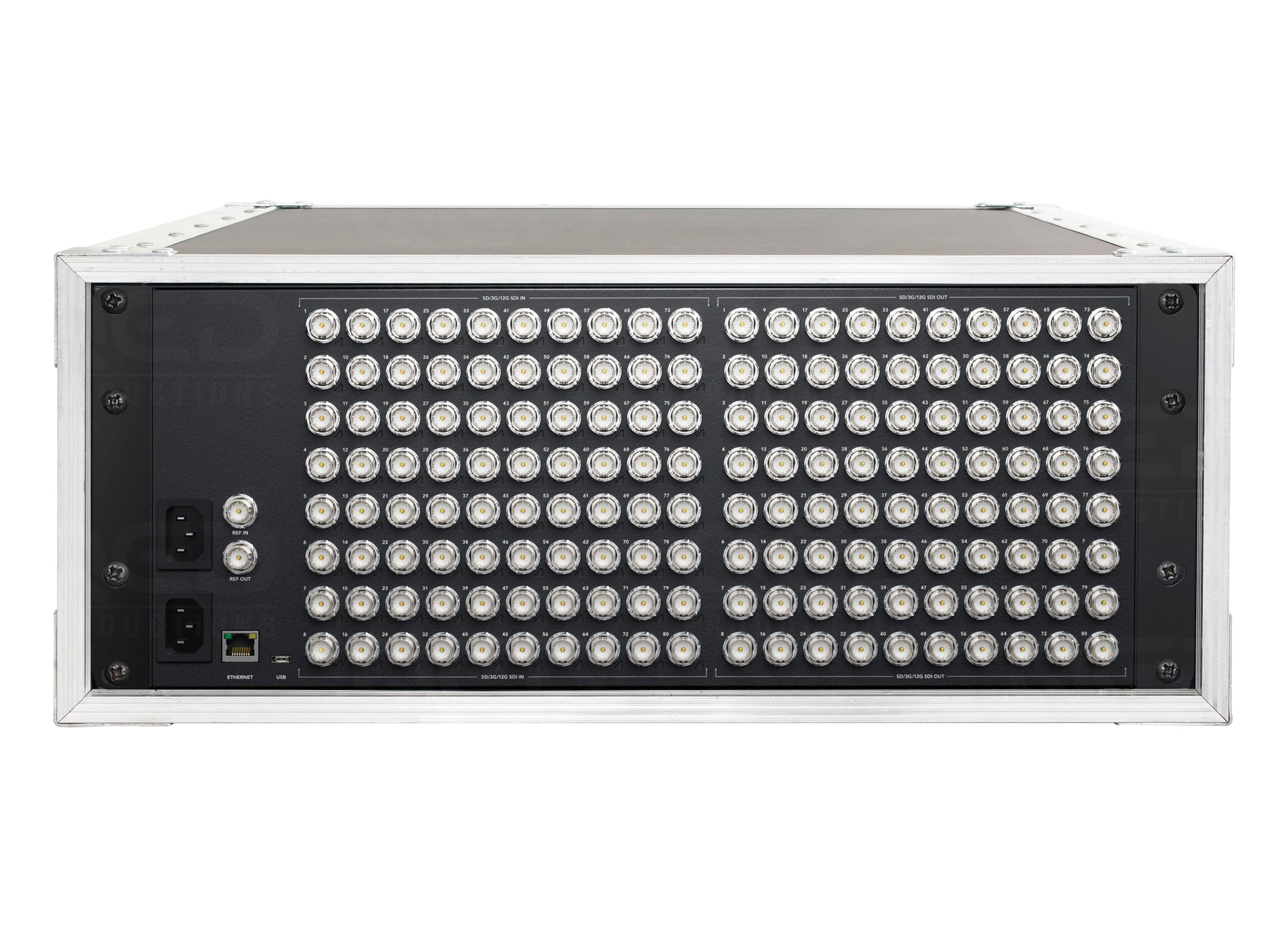 Advanced 12G-SDI video router supports any SD, HD or Ultra HD SDI format on the same router at the same time. Smart Videohub 12G 80x80 features 80 inputs and 80 outputs and includes video reference, redundant power connections and an elegant machined metal front panel with large full HD LCD for monitoring and routing label display. Routing can be performed by direct button selection and the spin knob controller. 12G-SDI technology supports all SDI video standards up to 2160p60.