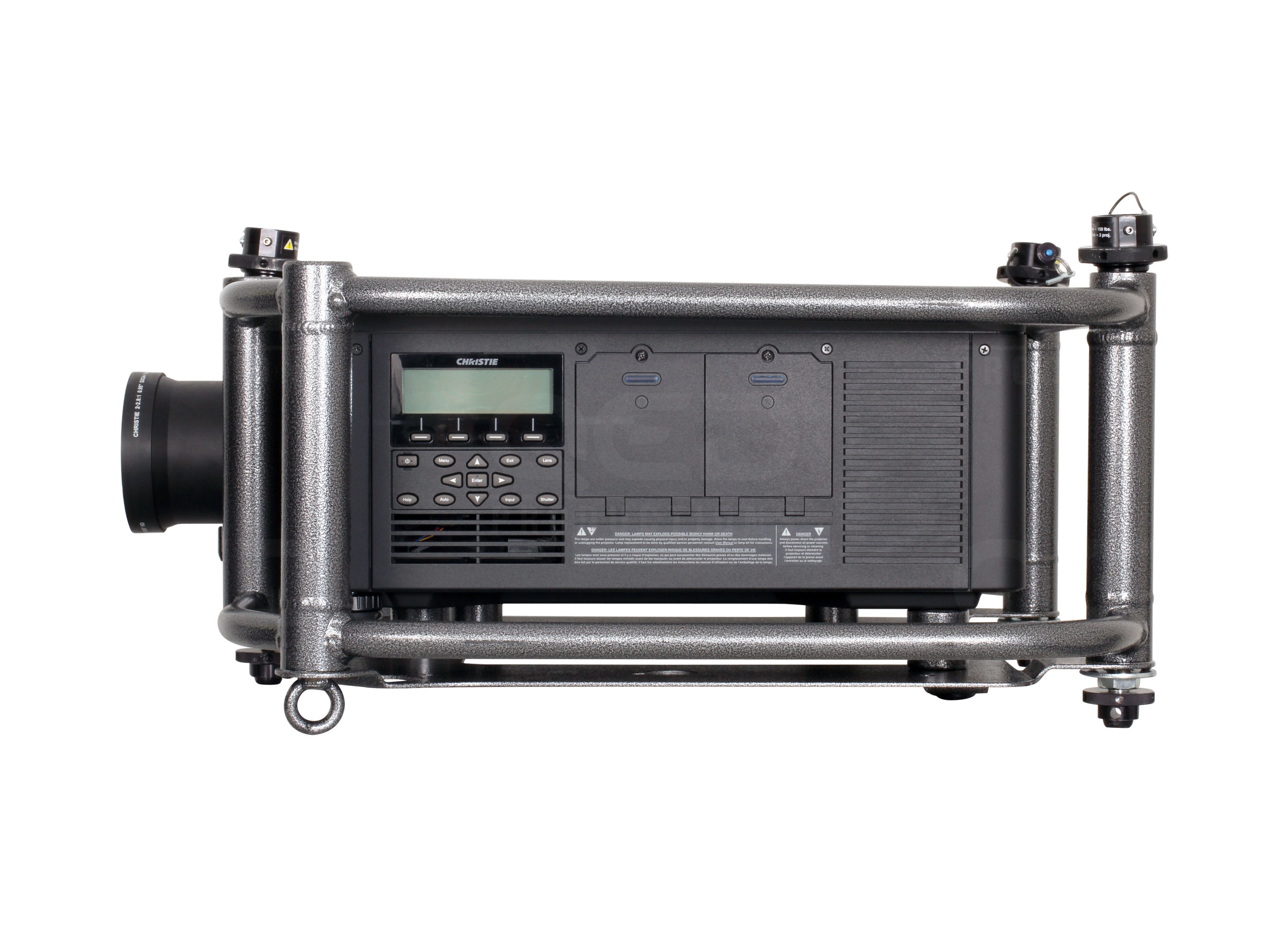 Lens mount: Motorized horizontal and vertical lens offset Scheimpflug (tilt) adjustment Built-in light shutter Tool-free lens insertion system Illumination: Dual Osram® PviP® 350W lamps Lamp Life (Typical): 1500hrs @ 350W, 2000hrs @ 300W |