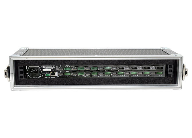MX2-8x8-DH-8DPio-A supports 3D, Dolby TrueHD and DTS-HD Master Audio and also HDR10, HDR10+ and Dolby Vision. Proprietary Lightware technologies like Pixel Accurate Reclocking and Advanced EDID Management are included, and the device can be controlled via the built-in website.