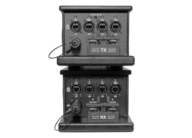 2-channel HDMI 2.0, 1Gb Ethernet fibre transmitter and receiver
