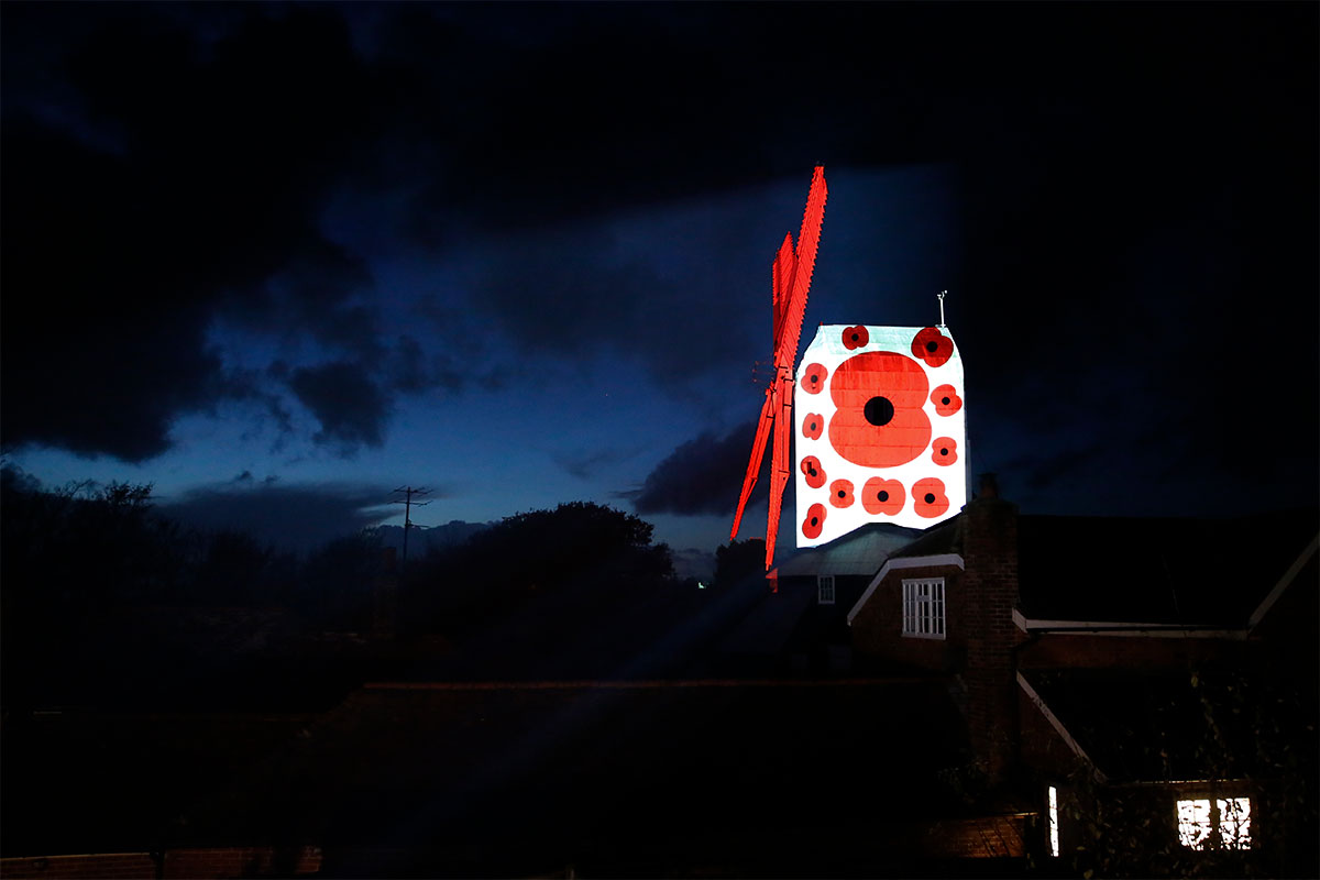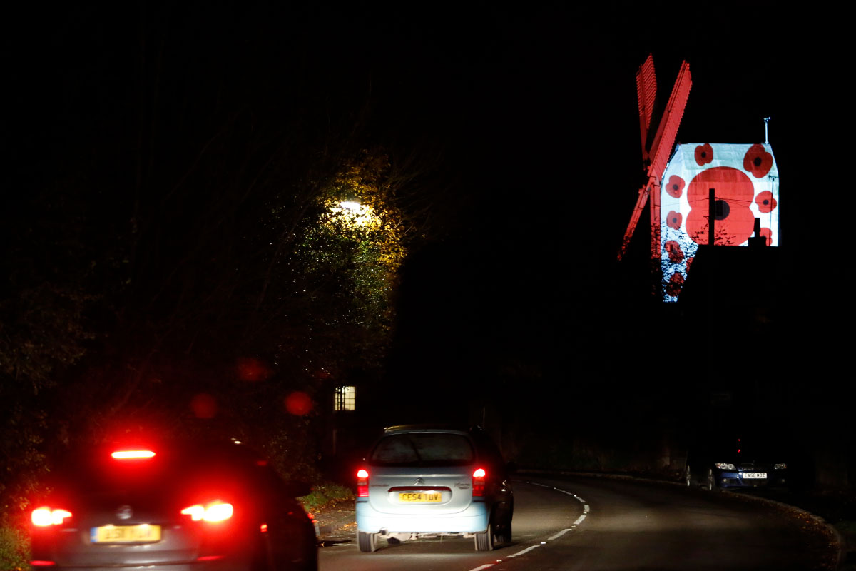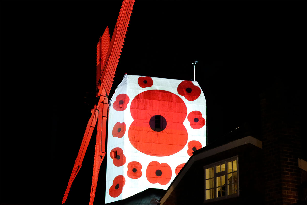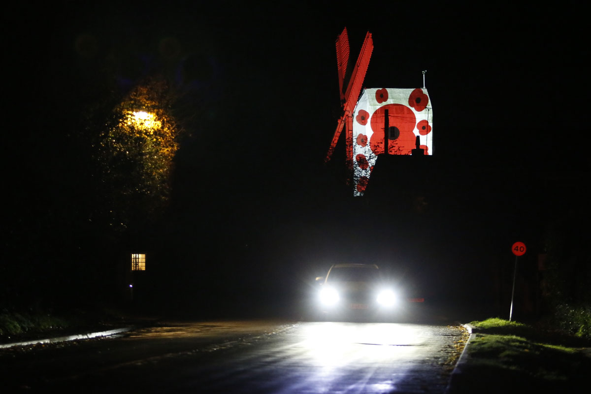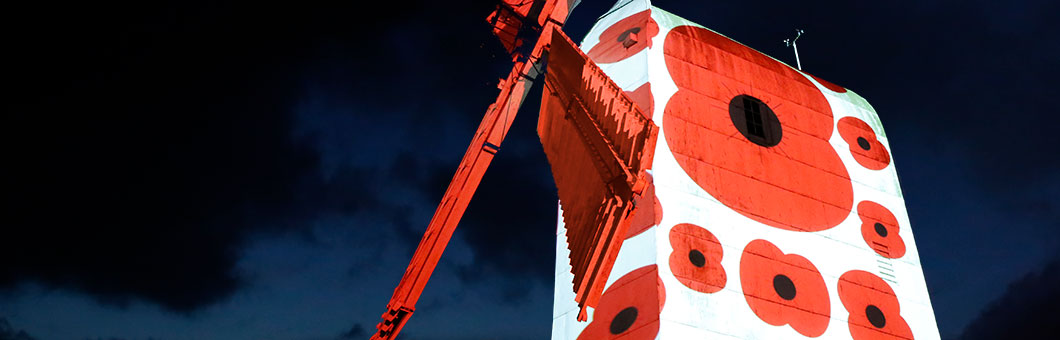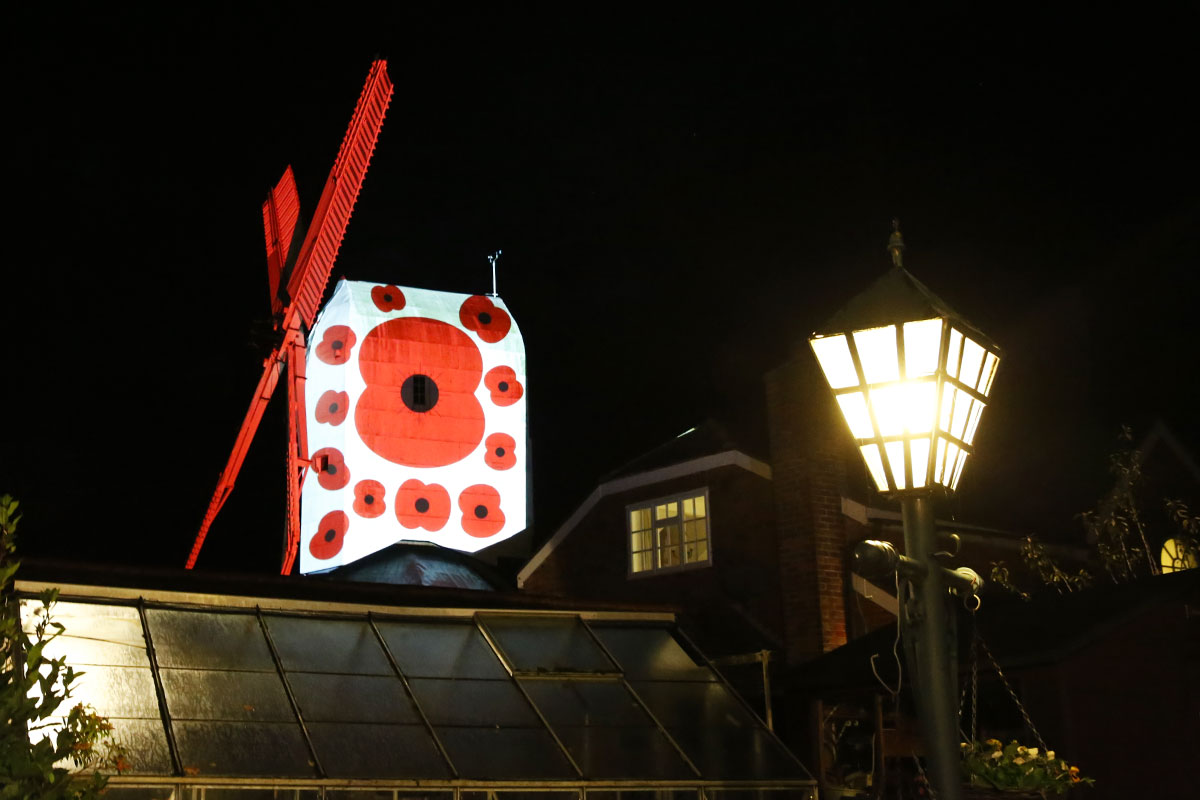 To honour and remember those who lost their lives in Service of their country QED projected poppies onto the windmill for Armistice Day.
