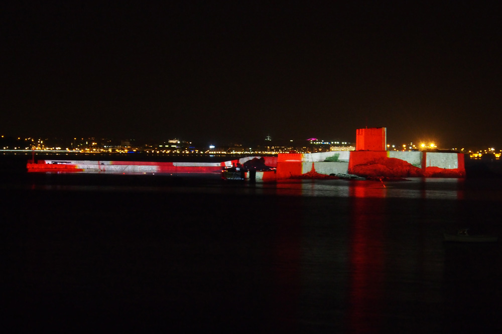 Commenting on the challenge Dan Gray said "Working out the projector coverage and designing the UV template was without question the most complex technical puzzle I've ever had to solve. It wasn't until my initial visit that the full scale and size of the fort became apparent. I'd been studying various photographs taken from the internet but until I actually stood on the island it hadn't been apparent as to quite how large it was. It took me quite a while to come up with a solution for the projection as it wasn't immediately obvious how to achieve projector coverage on all the faces without ending up placing towers in the middle of the sea. In the end the solution hit me on the flight home - to actually use the island's unique shape with its breakwater to enable us to cross project back onto itself!
