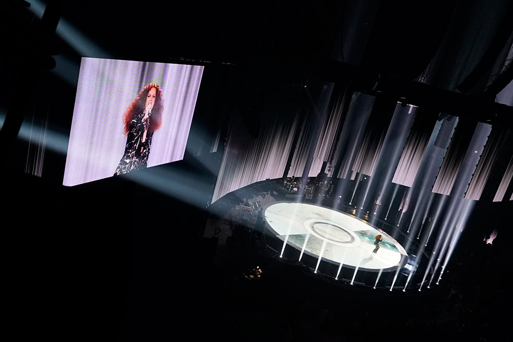 Eight Christie Boxer 4K30 30,000 lumen projectors were used to map the 16m diameter circular stage for the performances by Jess Glynne and Rihanna. Projecting at extremely wide angles and from low positions on either side of the arena made the line-up extremely challenging. Being quieter, smaller and lighter than other projectors of similar brightness, the Boxers also offered additional installation flexibility and were easier to position within the O2 venue than any other projection system.