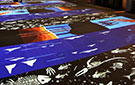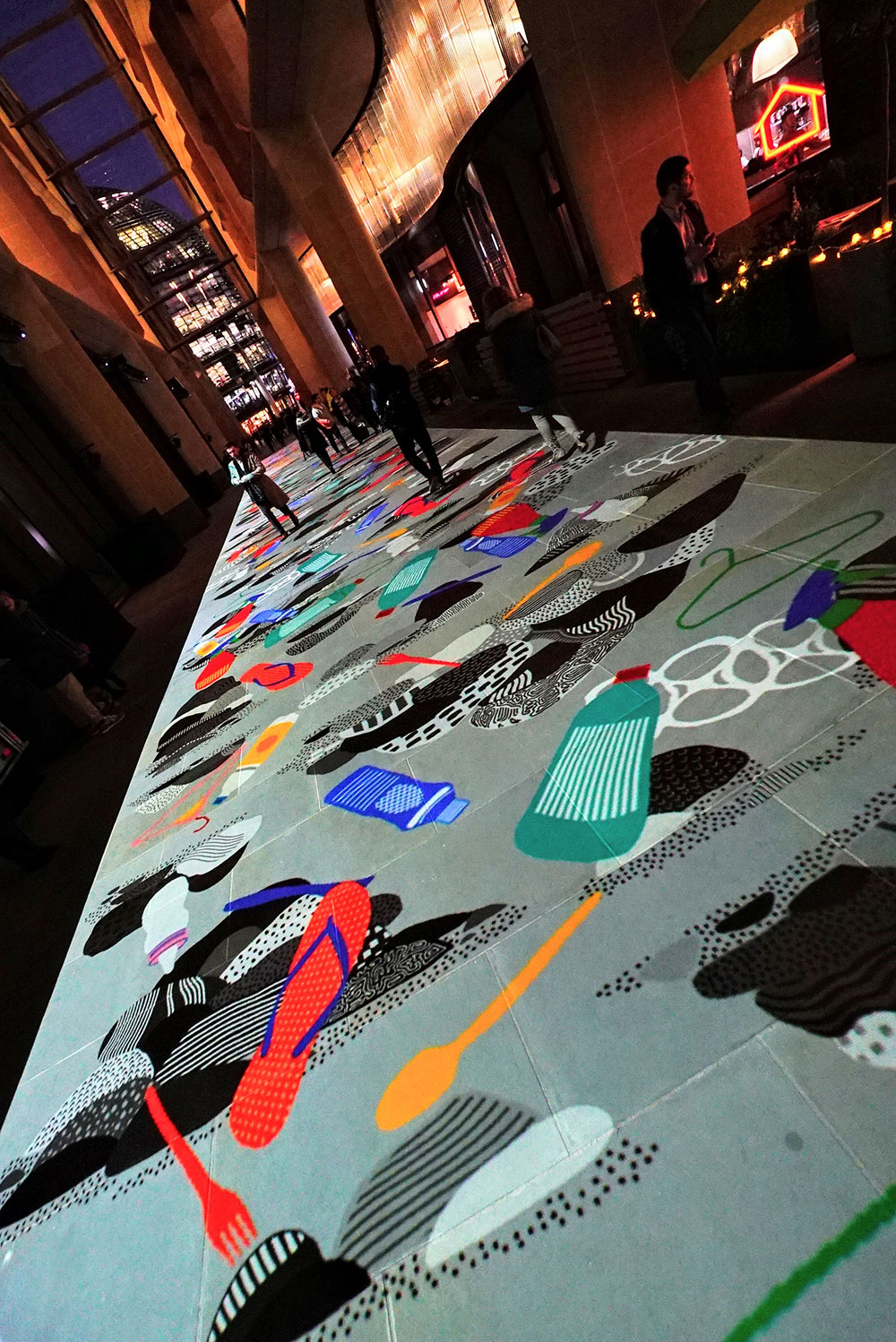 Developed in collaboration with textile artist Hazel Dunn, NOVAK's work draws on the tradition of textile design as a medium for storytelling, playing with geometric patterns, bold colour and texture. An original soundtrack produced by composer Ed Carter accompanies the continuous projection to create a sense of constant motion and urgency.