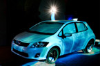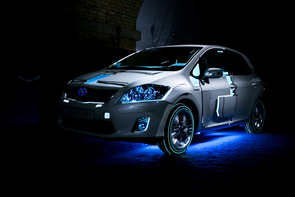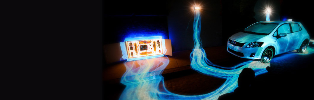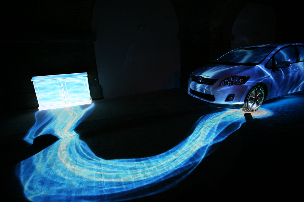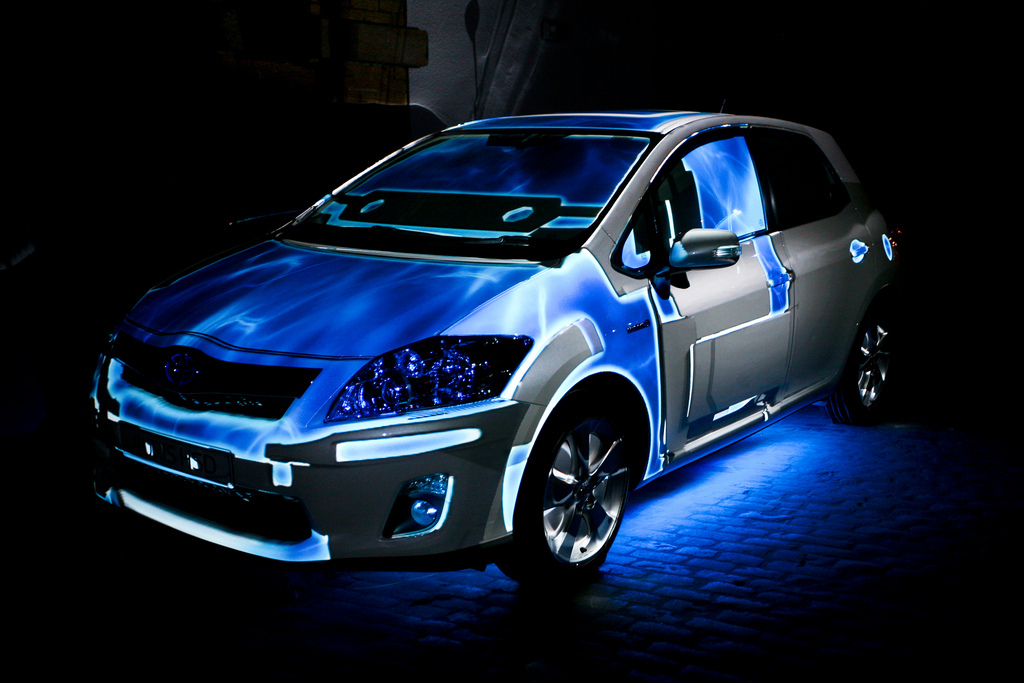 Curious passers-by were treated to an amazing visual installation, entitled "Get Your Energy Back", which used the latest 3D projection mapping techniques to dramatise the unique technology contained within the new Toyota Auris Hybrid car. The resulting film of the occasion has proved a massive hit on social sites. Creative advertising agency glue Isobar created and produced the event, generating 90 seconds of dynamic visual animation for the projection. The sequence showed the body of the Auris transforming and peeling back to reveal a glowing blue energy, which then escaped and interacted with various objects within the tunnel where the car was situated. The energy then returned to the car, bringing to life the amazing way in which the Auris recycles its energy as it drives.