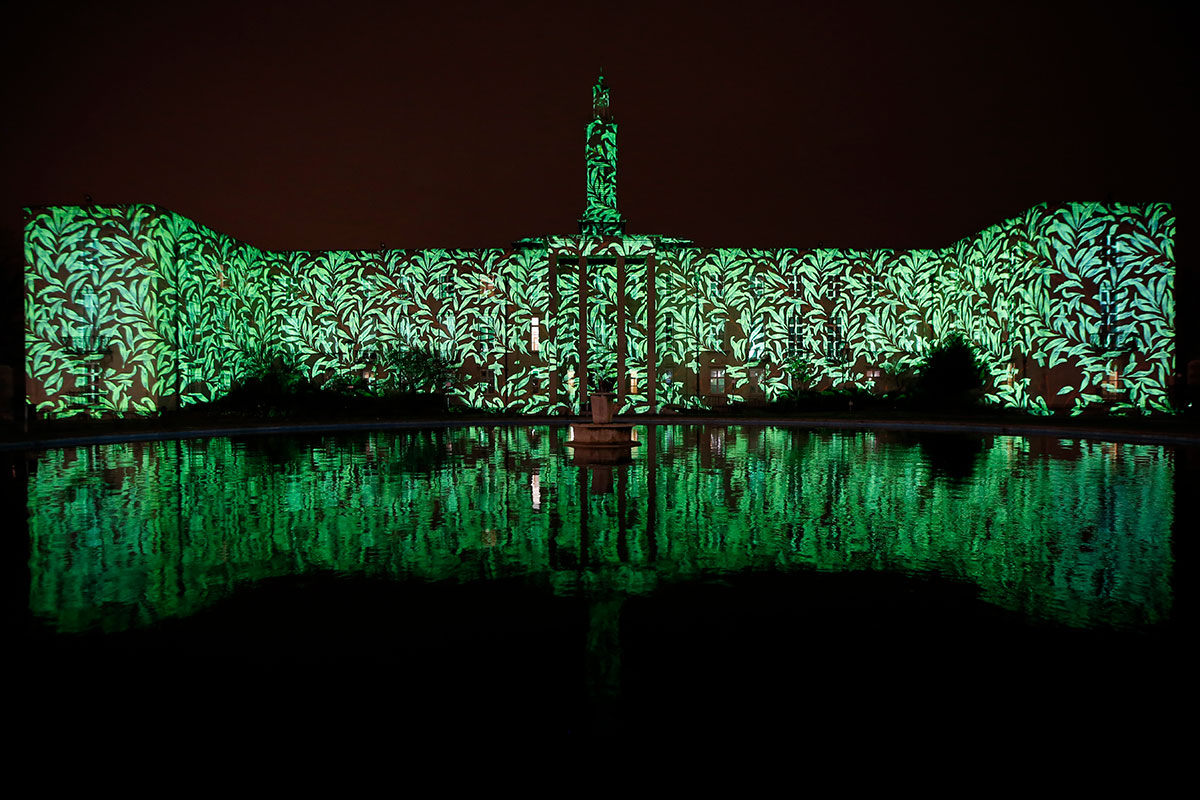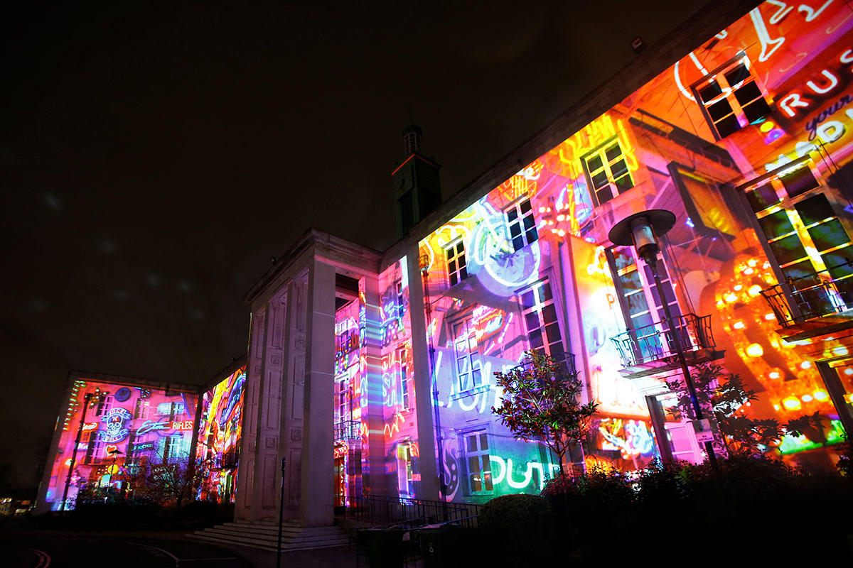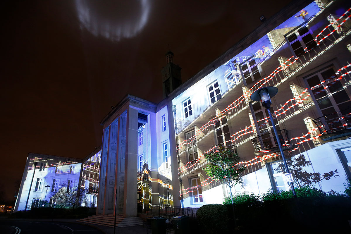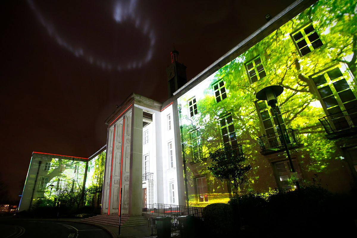 Four 6m high projection towers were positioned at the opposite end of the site to the building with all the projectors cross-shooting in order to avoid the multitude of lamp-posts, trees and structures that would otherwise have blocked the projection beams. QED's Head of Digital Media Harry Ricardo remarked "It's such a great building to project onto and having a full 3D scan of it and the surrounding area allowed us to figure out the optimal positions for our projectors well in advance. We designed the template to allow Greenaway & Greenaway to really make the most of the architectural features and to play with its form. It is really exciting to be a part of an event on this scale which has been so well received by the community."