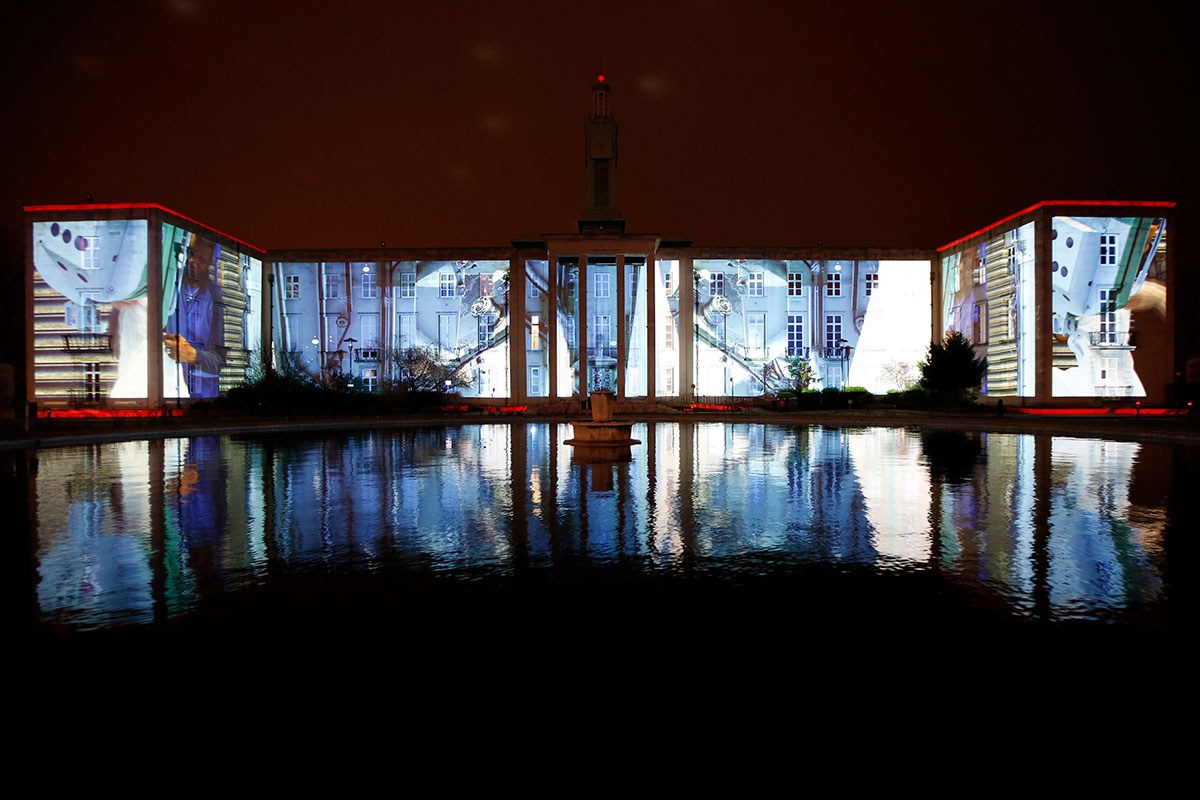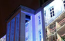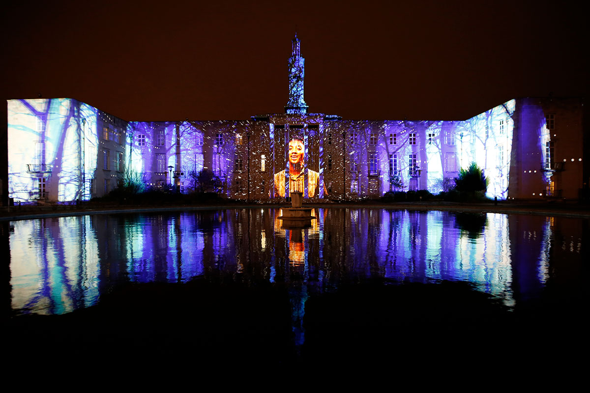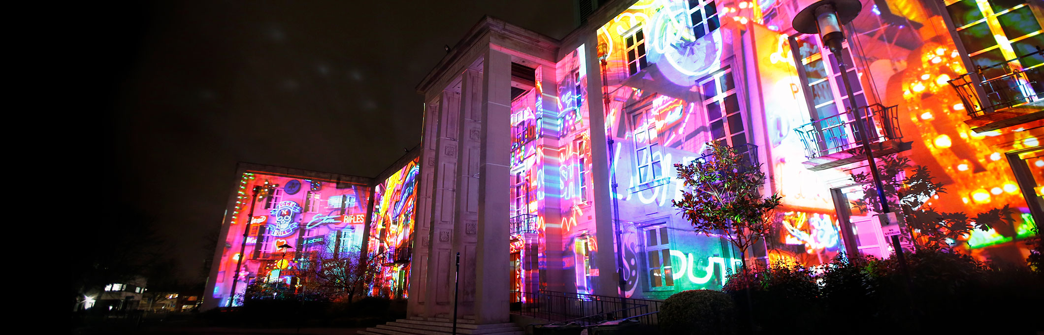 Four 6m high projection towers were positioned at the opposite end of the site to the building with all the projectors cross-shooting in order to avoid the multitude of lamp-posts, trees and structures that would otherwise have blocked the projection beams. QED's Head of Digital Media Harry Ricardo remarked "It's such a great building to project onto and having a full 3D scan of it and the surrounding area allowed us to figure out the optimal positions for our projectors well in advance. We designed the template to allow Greenaway & Greenaway to really make the most of the architectural features and to play with its form. It is really exciting to be a part of an event on this scale which has been so well received by the community."