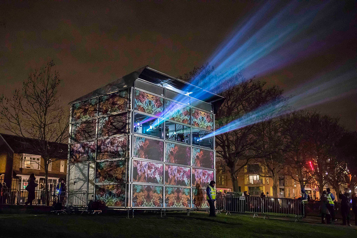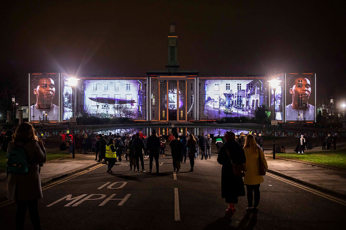 Working with artists Greenaway & Greenaway, QED transformed Waltham Forest Town Hall for 'Into the Forest', a high energy film that tells the story of the borough through the eyes of Waltham Forest's diverse communities. Greenaway & Greenaway collaborated with Mercury Music Prize-winning musician and producer Talvin Singh on the soundtrack, bringing the sounds of drum and bass back to one of the areas where the genre first began in the early 1990s.