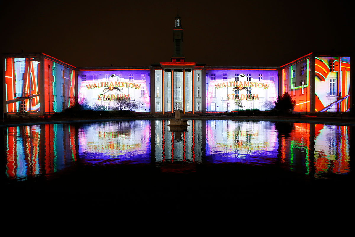 "Amazing video mapping by QED Productions at the Walthamstow Assembly. Top job guys!!"